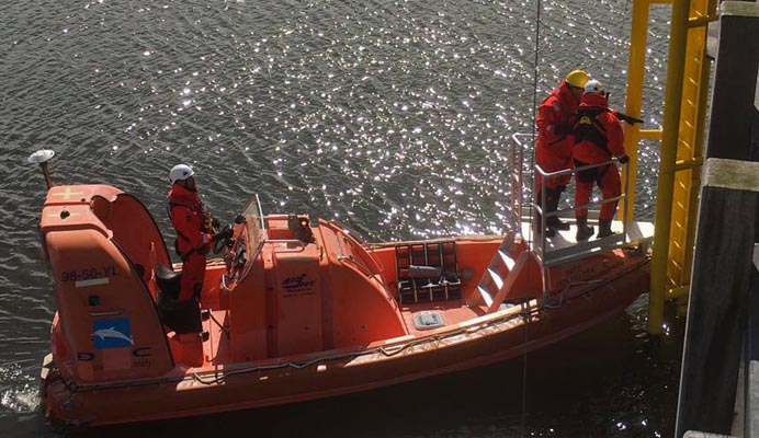 - Veilig overstappen van kade naar schip, schip naar schip en schip naar fundatie (TP) en terug. Boot transfers, inclusief het gebruik van de Self-Retractable Lifeline (SRL) & twin fall arrest lanyards.