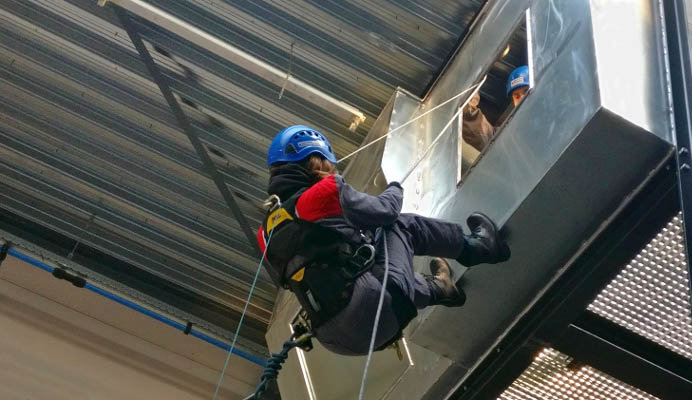 In deze tweedaagse GWO module Working at Heights (werken op hoogte) leert de deelnemer in theorie en praktijk de vaardigheden die nodig zijn om te werken op hoogte en om reddingsacties uit te voeren.