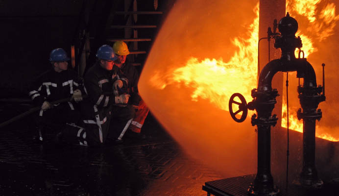 - Reageren op alarmen, identificeren van calamiteit en locatie, vaststellen te gebruiken uitrusting (waaronder adembeschrming) en brandbestrijdingsmiddelen.