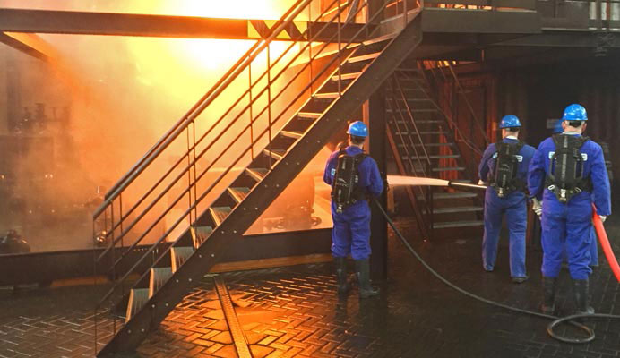 - Praktijk door het daadwerkelijk uitvoeren van brandbestrijdings- en reddingsoefeningen, inclusief helikopterincidenten.